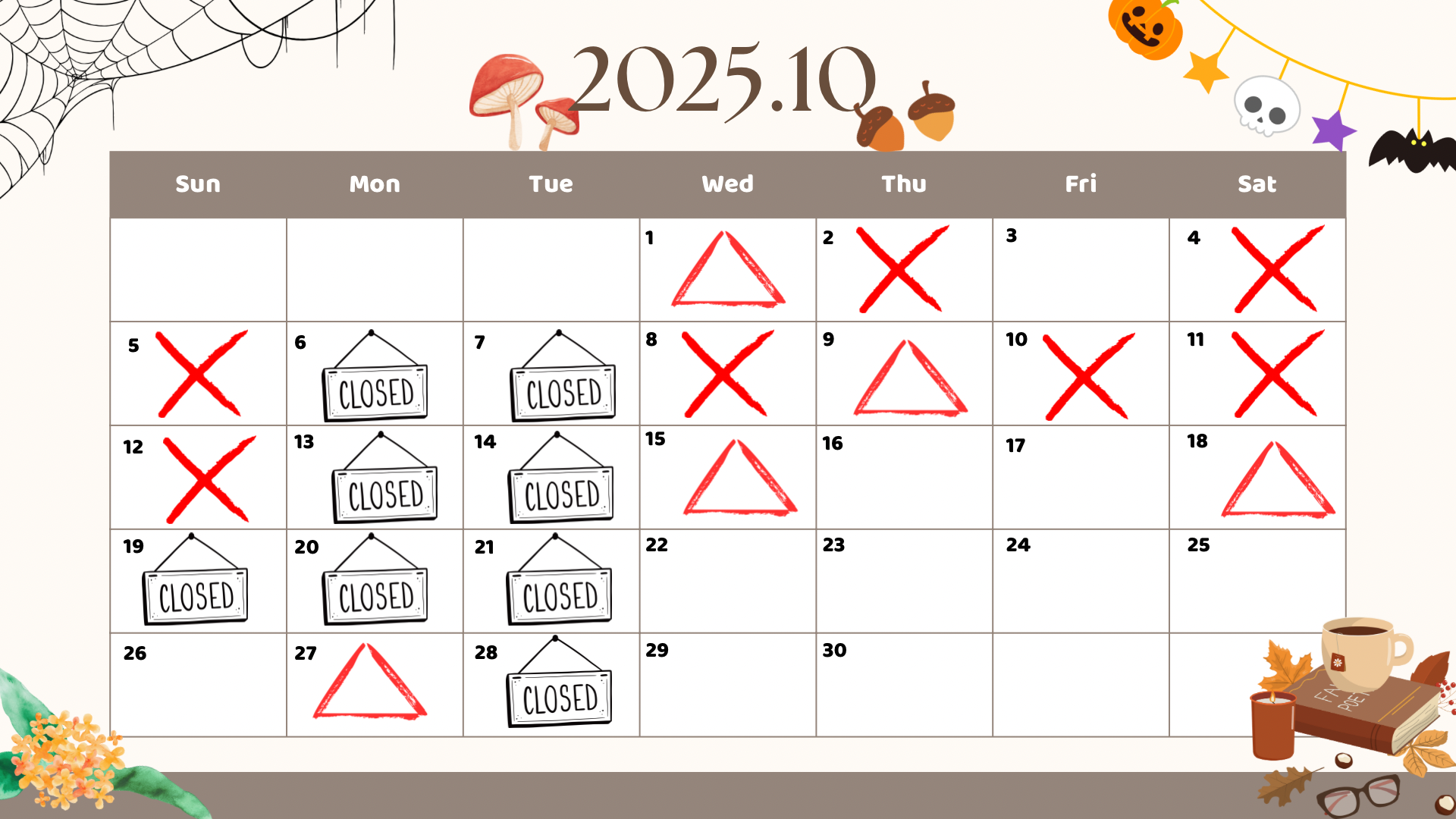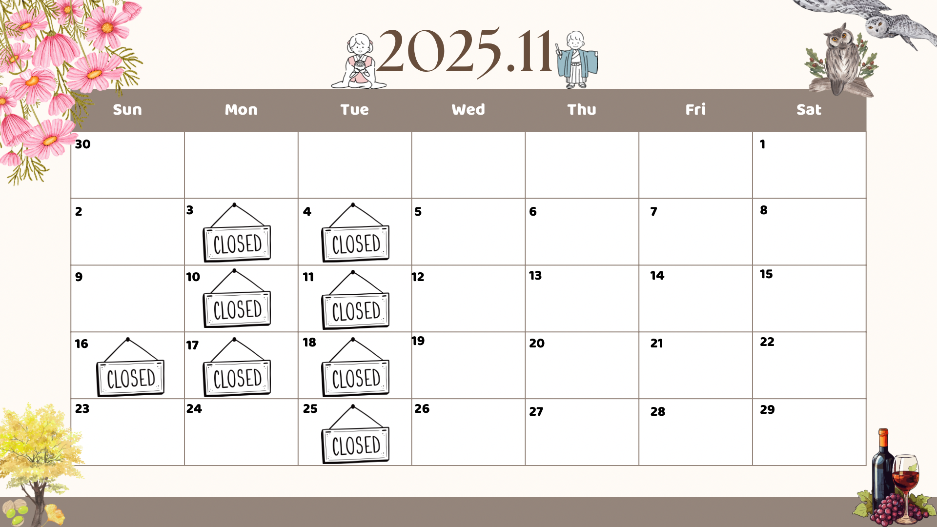 CLOSEDは定休日、臨時休業